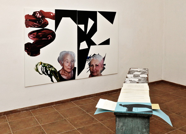 I foto-romanzi di Nicole Gravier, ovvero serie di fotografie in cui lei si identifica nei ruoli stereotipati dell’attesa amorosa preparando dei set sottilmente o più apertamente critici; cartoline d’amore d’epoca su cui William Xerra interviene a ritagliare e asportare la figura maschile e su cui applica la scritta “IO MENTO”; un lavoro di Meri Gorni che ha per soggetto diverse lettere amorose unilaterali (dalla parte delle bambine); una scatola di Fausta Squatriti che contiene una serie di lettere e cartoline che costituiscono il carteggio fra due amanti lontani i cui testi vertono sulla bellezza del mondo e dell’arte; un medaglione, tipico pegno d’amore, ripensato da Giancarlo Montebello al cui interno c’è una fotografia di Paola Mattioli che ritrae l’immensità del cielo notturno; un paio di guanti con le spine di Marza Migliora; un video di Ottonella Mocellin e Nicola Pellegrini che consiste in un dialogo tra Salomè e la testa del Battista che lei regge sul piatto; un lavoro di Meri Gorni; alcuni ingrandimenti “oggettuali” dei bigliettini contenuti nei Baci Perugina con le loro frasi famose leggermente accartocciati e appesi alle pareti, opera di Luigi Billi; la documentazione video, o meglio, la performance dal vivo di Sabrina Mezzaqui che distribuisce a un certo punto al pubblico dei Baci Perugina.